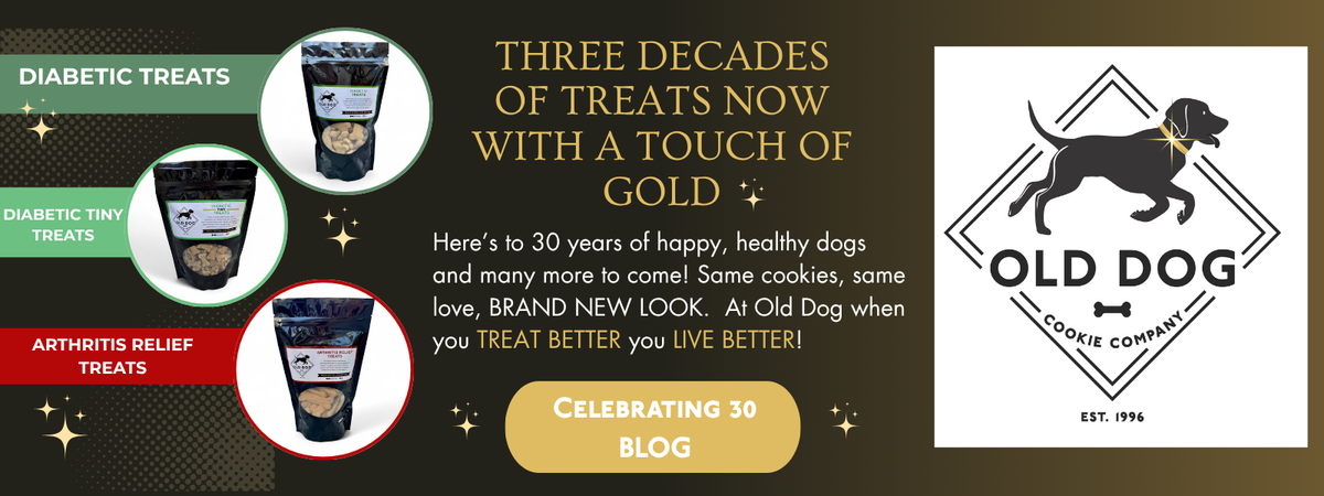 Since 1996, The Old Dog Cookie Company has been supporting the health of aging dogs with diabetic and arthritis relief dog treats made from all-natural, human-grade ingredients. Our low-calorie, low-glycemic, prebiotic-rich healthy dog treats feature healing herbs known to support wellness, mobility, and quality of life, without the use of preservatives or fillers.