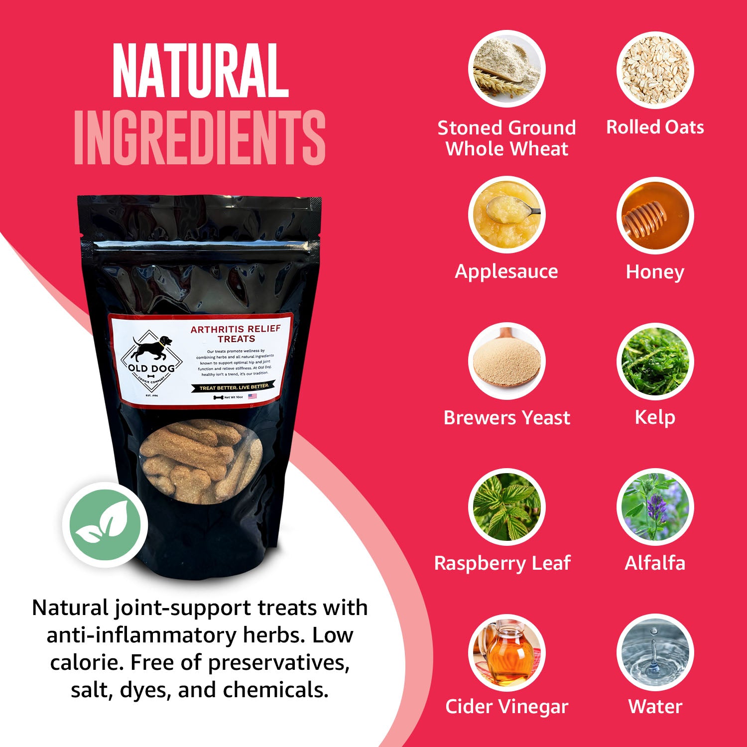 We created Arthritis Relief Dog Treats when our dog Jetty began showing signs of arthritis. By supplementing her diet with treats made with herbs, vitamins, minerals, and natural ingredients known to support hip and joint health and reduce inflammation, she soon returned to her playful self.