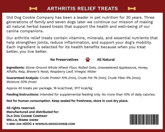 • If your dog suffers from BOTH arthritis and diabetes, we recommend our Diabetic Dog Treats.